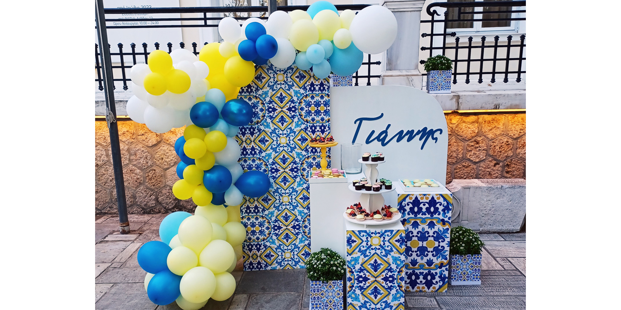 Βάπτιση με ελληνικά μοτίβα – Μπλε, κίτρινο και λευκό στο Μουσείο Φυσικής Ιστορίας Γουλανδρή